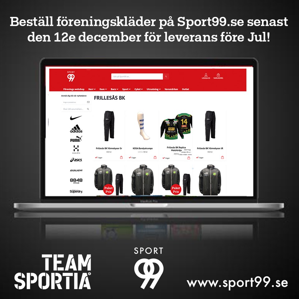 Meddelande från Team Sportia: Sista beställningsdag för klubbkläder före jul är den 12 december, för leverans innan jul.