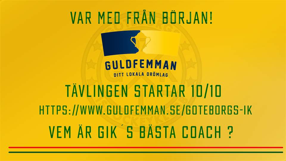 Glöm inte att registrera din egen drömfemma i GIK´s trupp. Tävlingen drar igång i.o.m. hemmamatchen mot Lerum på söndag 10/10. Fina priser väntar på segraren, och inte minst den inofficiella titeln "GIK´s bästa coach". Samtidigt som du tävlar ger du ett viktigt bidrag till GIK´s verksamhet. Lycka till !