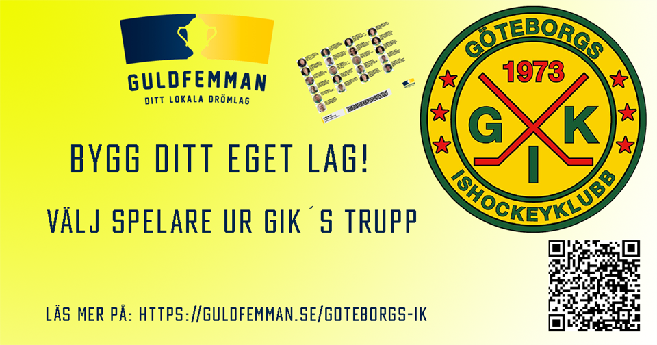 Nu är det åter dags för Guldfemman! Vem är GIK´s bästa coach? Logga in på: GULDFEMMAN och registrera de fem killarna du tror kommer leverera i år. Poäng räknas på ett sätt så att varje spelares prestation värderas utifrån: position, kostnad, utvisningar, mål, assist, räddningar, matchens lirare m.m. Detta gör att alla positioner i laget har samma möjlighet att skrapa ihop poäng. (inte bara mål och assist). Vilken är DIN drömfemma om du vore coach i GIK? (mot en mindre kostnad finns möjlighet att byta spelare under säsongen) Fina priser står på spel, för de coacher som lyckas bäst med sin femma. På samma gång som du testar dina kunskaper som coach, så stöttar du GIK´s verksamhet. Lycka till !