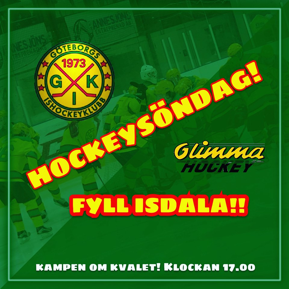 På Söndag klockan 17.00 tar vi emot Glimma! Viktiga poäng står på spel och vi hoppas att alla som har möjlighet kommer ner till ishallen och stöttar våra gula krigare denna kväll!