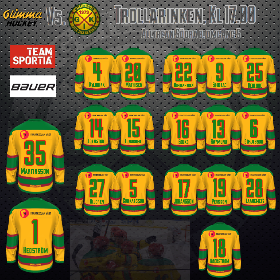 GIK vinner en storseger i söndagskvällens match i Isdala mot Limhamn Hockey 11 - 1 ( 2 - 0, 4 - 1, 5 - 0. ) Skott 58 - 20. Måste LYFTA PÅ HATTEN för våra Gul Gröna iskrigare som för dagen genomför matchen i en förkrossande överlägsenhet. Måste säga att laget verkligen har lyft sig från det något svajiga spelet i grundserien. Vi känns nu rejäla på ett helt annat sätt i matcherna. Vi tar nu välbehövlig vila från seriespelet i några veckor, där det nu är viktigt och träna ordentligt för att bibehålla den fina formen. Nästa match mot Halmstad Ravens i Halmstad Arena torsdagen 9/1 KL 19.00 Målskyttar i kvällens match Hugo Raymond 3, Dimitrios Kosmas 1, Martin Kylbrink 1, David Borkenhagen 1, Viktor Berglund 1, Wictor Adolfsson Hedlund 1, Harley Bolke 1, Emil Bihorac 1, Kevin Börjesson 1.